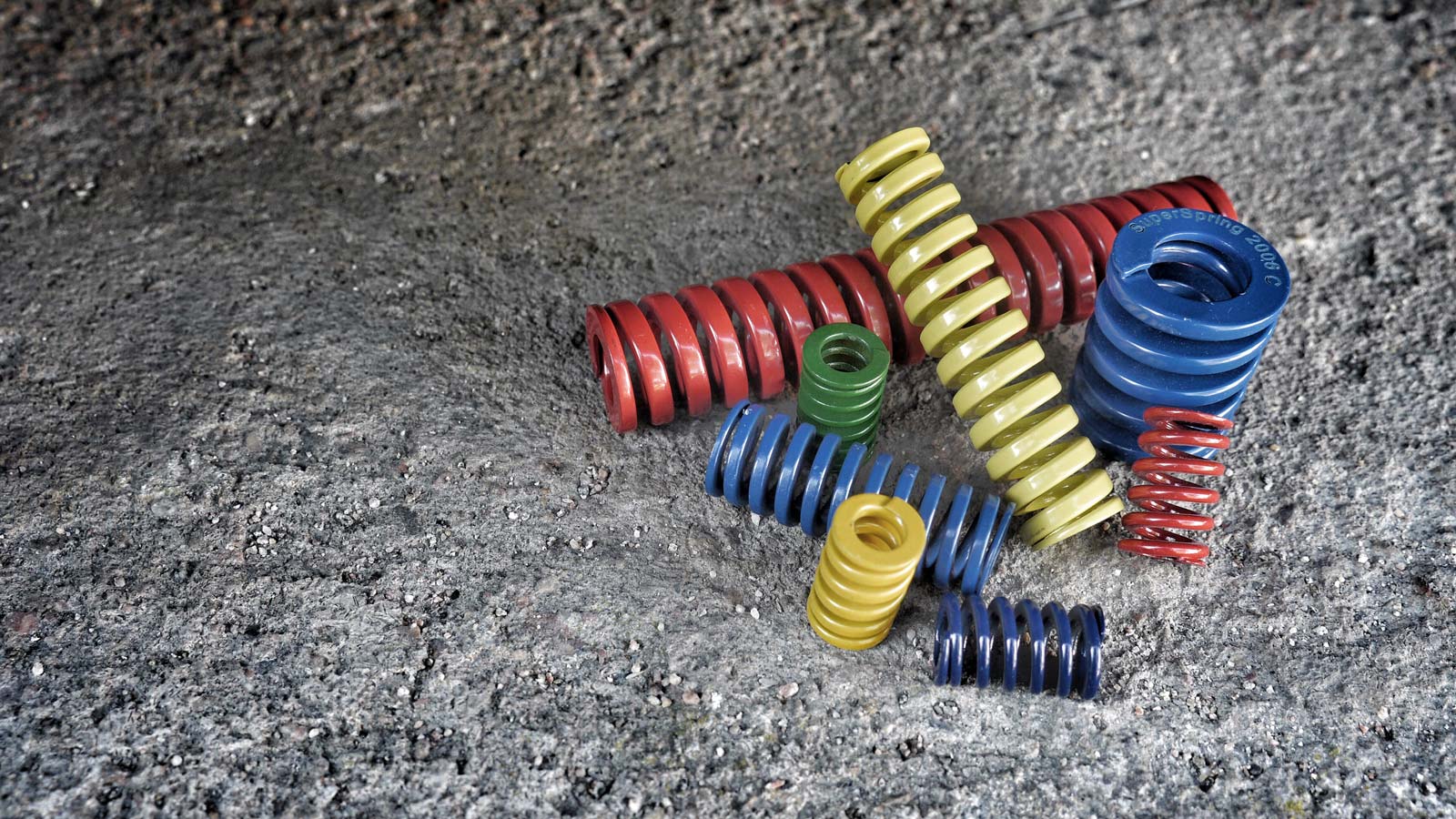 Standard-verktygsfjädrar är epoxylackerade i olika kulörer beroende av styrkan. Vi levererar verktygsfjädrar i olika styrkor.